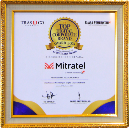 Penghargaan diberikan oleh Suara Pemerintah ID yang bekerja sama dengan Lembaga penilai independen TRAS N CO. Penghargaan ini diberikan atas keberhasilan Mitratel membangun Corporate Branding secara digital dalamperiode satu tahun terakhir.